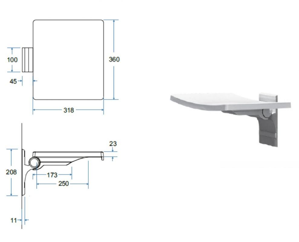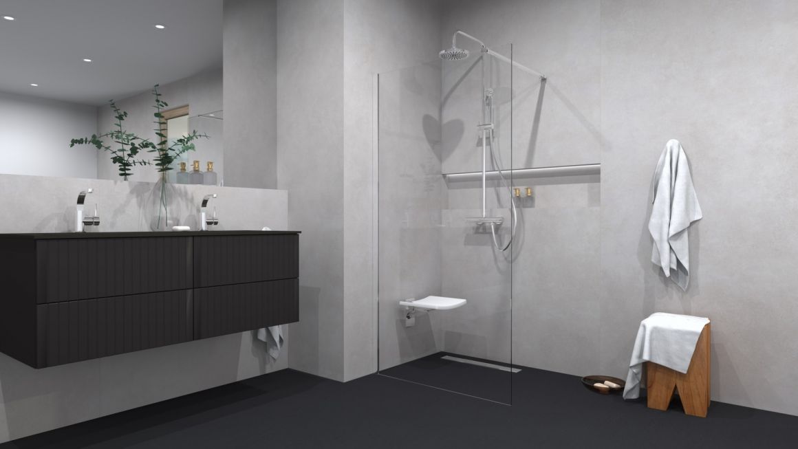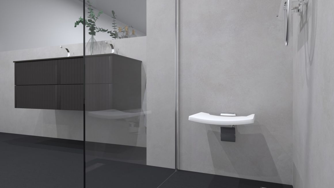 Suihkuistuin, joka asennetaan seinään.