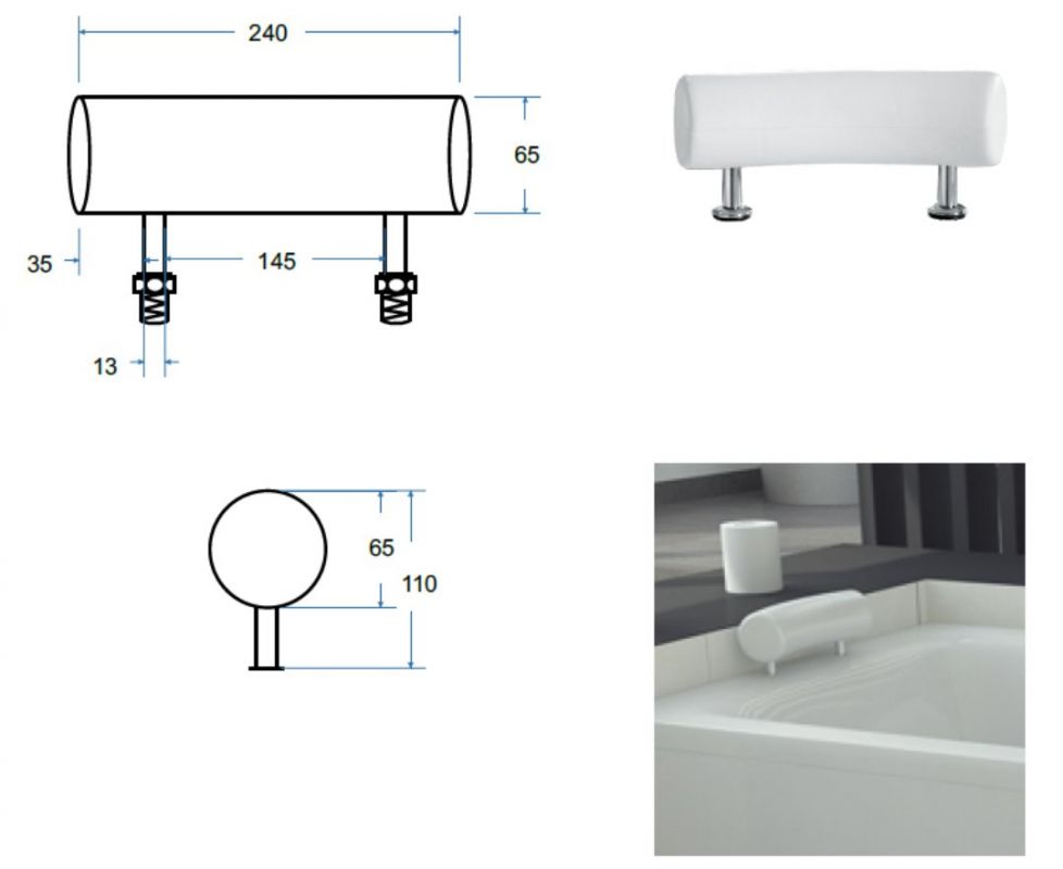 Sopii kylpyammeisiin: Talia, Natalia, Milena, Optima, Intrica, Intrica Slim, Inspiro, Luna, Mia, Luksja, Continea, Cornea. Materiaali: polyuretaani. Asennus: metallitapit ruuvataan kiinni kylpyammeeseen.
