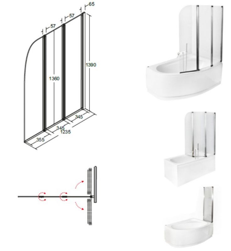 Käännettävä malli: oikea / vasen kokoonpano. Turvallinen karkaistu lasi ja alumiini, metallin yksityiskohtien kiiltävä kromipinta. Yhteensopivat kylpyammeet: mikä tahansa suorakaiteen muotoinen kylpyamme, pituus 130 cm ja yli & valitut epäsymmetriset kylpyammeet (kylpyamme ei sisälly suihkuseinän hintaan). Saatavilla on laaja valikoima yhteensopivia hana- ja suihkusarjasarjoja.