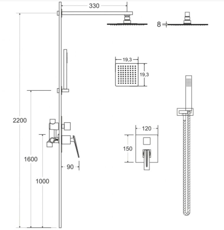 - Yläsuihkun halkaisija: 19,3