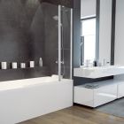Käännettävä malli: oikea / vasen kokoonpano. Turvallinen karkaistu lasi ja alumiini, kiiltävä kromattu viimeistely metallin yksityiskohdista sarana. Sopivat kylpyammeet: mikä tahansa suorakaiteen muotoinen kylpyamme, pituus 130 cm tai enemmän (kylpyamme ei sisälly suihkuseinän hintaan). Saatavana laaja valikoima yhteensopivia hana- ja suihkusarjasarjoja.