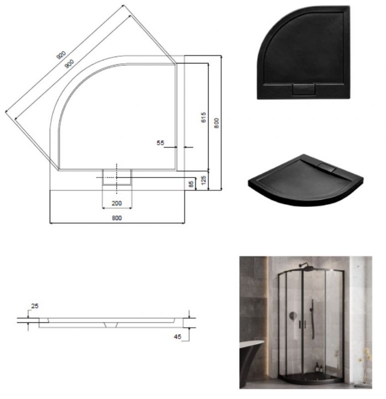 Suihkuastian hintaan sisältyy sopiva viemärin suojus ja sifoni, jossa on yläpuhdistustoiminto. Suihkualtaan muoto mahdollistaa joko lattialle tai lattiatasoon asennuksen, jolloin suihkutilaan ei ole kynnystä. Pohjan vahvistus HDF-levyllä.