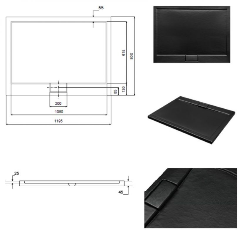 Suihkuastian hintaan sisältyy sopiva viemärin suojus ja sifoni, jossa on yläpuhdistustoiminto. Suihkualtaan muoto mahdollistaa joko lattialle tai lattiatasoon asennuksen, jolloin suihkutilaan ei ole kynnystä. Pohjan vahvistus HDF-levyllä.