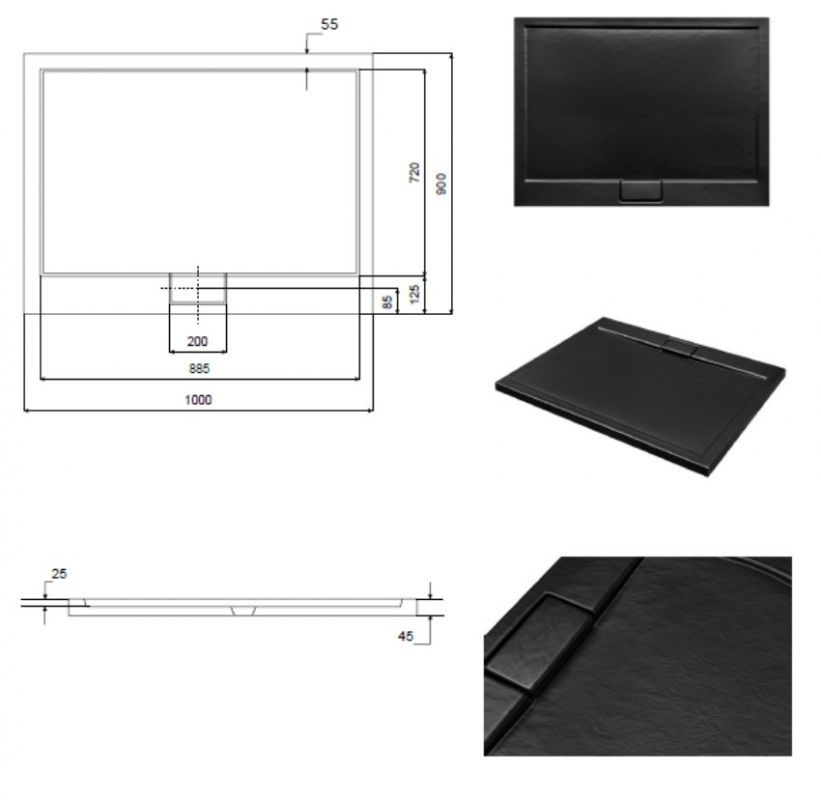 Suihkuastian hintaan sisältyy sopiva viemärin suojus ja sifoni, jossa on yläpuhdistustoiminto. Suihkualtaan muoto mahdollistaa joko lattialle tai lattiatasoon asennuksen, jolloin suihkutilaan ei ole kynnystä. Pohjan vahvistus HDF-levyllä.