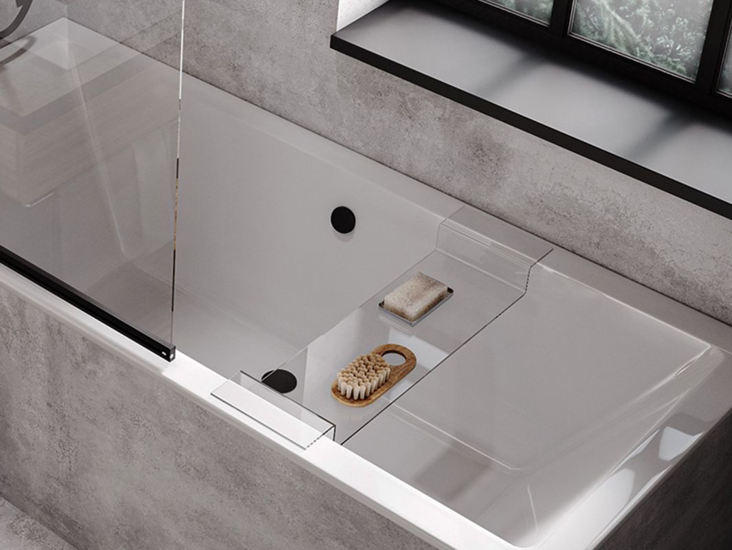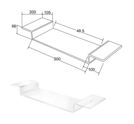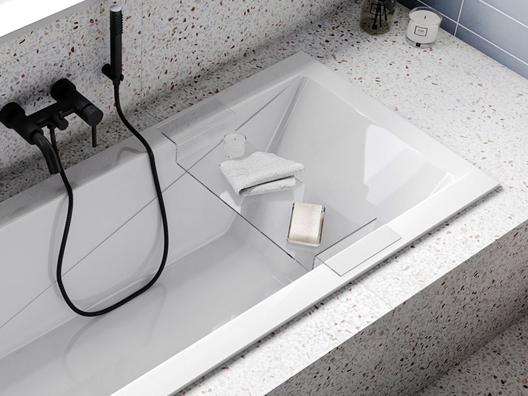 Läpinäkyvä akryyli kylpyammeen hylly, moderni muotoilu, toimiva, vedenpitävä. 2 kokoa saatavilla.