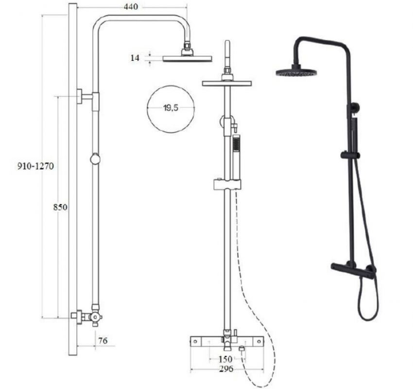 - Pääsuihkupään halkaisija: 19,5 cm