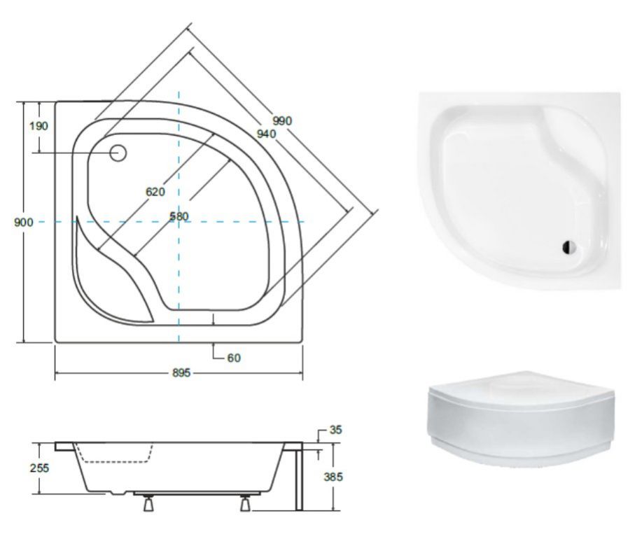 Suihkutason jalkasarja / tasausjärjestelmä sisältyy suihkutason hintaan. Paneelisarja sisältää yhden etupaneelin. Suihkuallas on saatavana myös Besco BeSafe -pinnoitteella lisämaksusta. Kiiltävä valkoinen viimeistely.