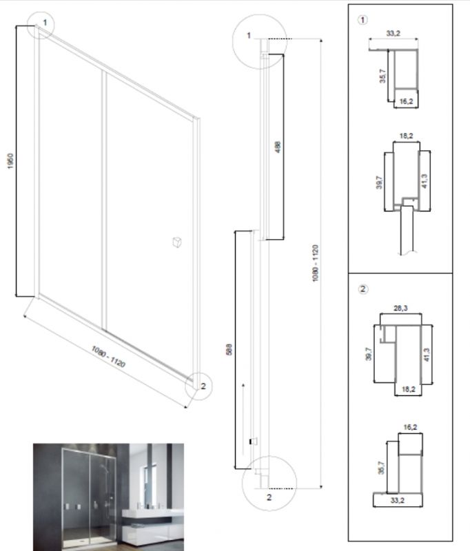 Suihkun liukuovet. Käännettävä malli: oikea/vasen kokoonpano. Turvallinen karkaistu lasi ja alumiini, metallin yksityiskohdat kiiltävä kromattu viimeistely. Mahdollisuus irrottaa alarullat. Kiinteä Duo Slide -sivupaneeli (koko 80 tai 90 cm) on lisävaruste ja se myydään erikseen lisämaksusta. Yhteensopivat suihkutarjottimet: Axim UltraSlim, Nox UltraSlim, Alpina SlimLine, Vexo, Vexo Black (suihkutarjotin ei sisälly suihkuovien hintaan). Sopivat lineaariset suihkuviemärit: koko Virgo-sarja (lineaarinen suihkuviemäri ei sisälly suihkuovien hintaan). Saatavilla on laaja valikoima yhteensopivia hana- ja suihkusarjasarjoja.