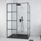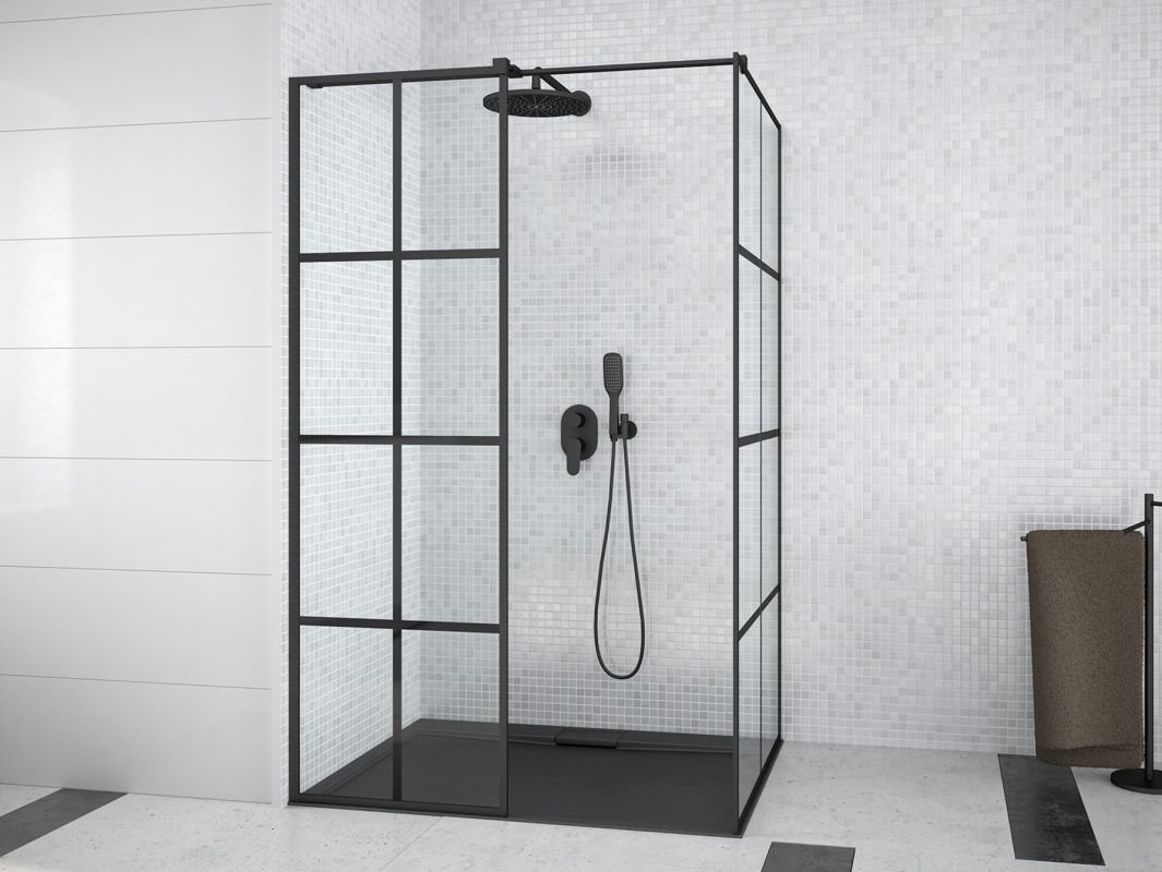 Karkaistu turvalasi 8 mm & alumiini, matta musta viimeistely metallin yksityiskohdista. Käännettävä malli: oikea / vasen kokoonpano. Ristikuvio lasissa. Musta alumiinikehys lasin ympärillä. Besco ProClean -pinnoite vakiona. Sopivat suihkualtaat: Axim UltraSlim, Nox UltraSlim, Alpina SlimLine, Vexo, Vexo Black. Sopivat lineaariset suihkuviemärit: koko Virgo-sarja. Saatavilla on laaja valikoima yhteensopivia hana- ja suihkusarjasarjoja.