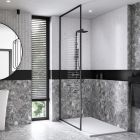 Karkaistu turvalasi 8 mm & alumiini, matta musta viimeistely metallin yksityiskohdista. Käännettävä malli: oikea / vasen kokoonpano. Kattokannattimen maksimietäisyys - jopa 260 cm. Musta alumiinikehys lasin ympärillä. Besco ProClean -pinnoite vakiona. Sopivat suihkualtaat: Axim UltraSlim, Nox UltraSlim, Alpina SlimLine, Vexo, Vexo Black. Sopivat lineaariset suihkuviemärit: koko Virgo-sarja. Saatavilla on laaja valikoima yhteensopivia hana- ja suihkusarjasarjoja.