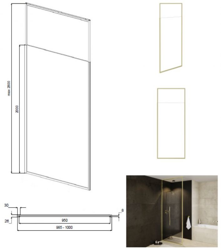 Ylhäältä säädettävä ohjaamon kiinnike, mahdollistaa asennuksen suoraan kylpyhuoneen kattoon 200-280 cm.