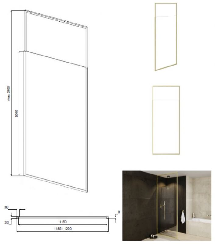 Ylhäältä säädettävä ohjaamon kiinnike, mahdollistaa asennuksen suoraan kylpyhuoneen kattoon 200-280 cm.