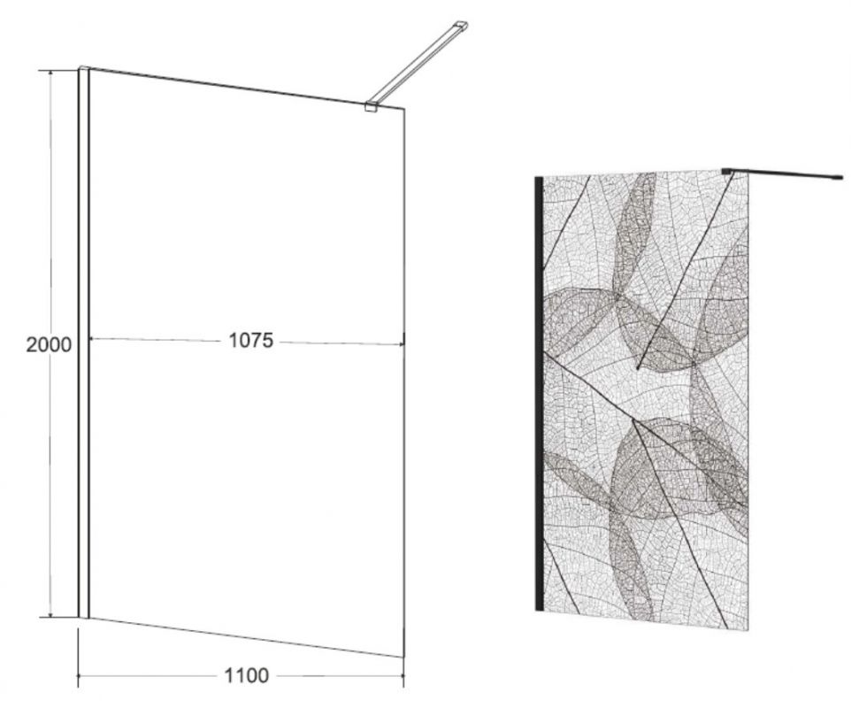 Karkaistu turvalasi 8 mm & alumiini, matta musta viimeistely metallin yksityiskohdista. Käännettävä malli: oikea / vasen kokoonpano. Kannattimen maksimipituus - 120 cm, se voidaan leikata mittojen mukaan. Lehtikuvio kotelon ulkopuolella, painomenetelmä: silkkipaino. Besco ProClean -pinnoite, vakiona. Sopivat suihkualtaat: Axim UltraSlim, Nox UltraSlim, Alpina SlimLine, Vexo, Vexo Black. Sopivat lineaariset suihkuviemärit: koko Virgo-sarja. Saatavilla on laaja valikoima yhteensopivia hana- ja suihkusarjasarjoja.