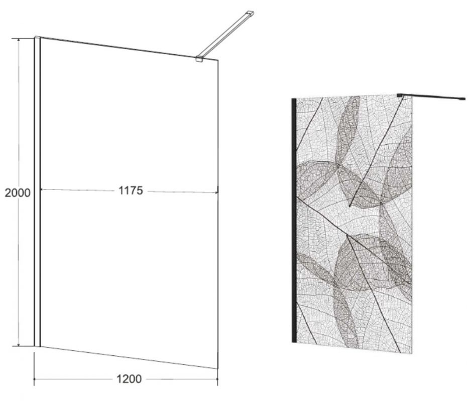 Karkaistu turvalasi 8 mm & alumiini, matta musta viimeistely metallin yksityiskohdista. Käännettävä malli: oikea / vasen kokoonpano. Kannattimen maksimipituus - 120 cm, se voidaan leikata mittojen mukaan. Lehtikuvio kotelon ulkopuolella, painomenetelmä: silkkipaino. Besco ProClean -pinnoite, vakiona. Sopivat suihkualtaat: Axim UltraSlim, Nox UltraSlim, Alpina SlimLine, Vexo, Vexo Black. Sopivat lineaariset suihkuviemärit: koko Virgo-sarja. Saatavilla on laaja valikoima yhteensopivia hana- ja suihkusarjasarjoja.