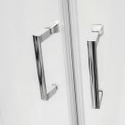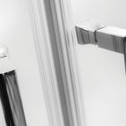 Assymetrinen suihkukaappi. Saatavana 3 lasiväriä: kirkas, himmeä, grafiitti. ProClean-pinnoite vakiovarusteena kirkkaan lasin kanssa. Käännettävä malli: oikea/vasen kokoonpano. Karkaistua turvalasia 6 mm & alumiinia, metallin yksityiskohtien kiiltävä kromiviimeistely. Mahdollisuus irrottaa alarullat. Omat suihkualtaat: Saturn 100x80. Saatavana laaja valikoima yhteensopivia hana- ja suihkusarjasarjoja.