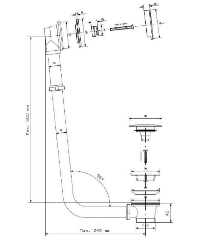 - Soveltuu retro-kylpyammeisiin, joissa on ø52 mm:n ylivuoto ja ulostulon halkaisija.