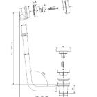 - Sisältää: ylivuoto, napsautettava pistoke, sifoni, jossa on lattialle johtava ulostuloaukko.