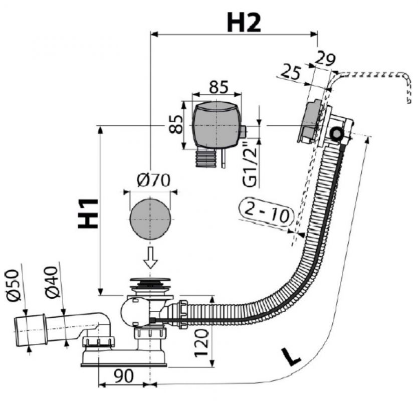- Soveltuu tavallisiin kylpyammeisiin, joiden sisääntulon halkaisija on ø52.