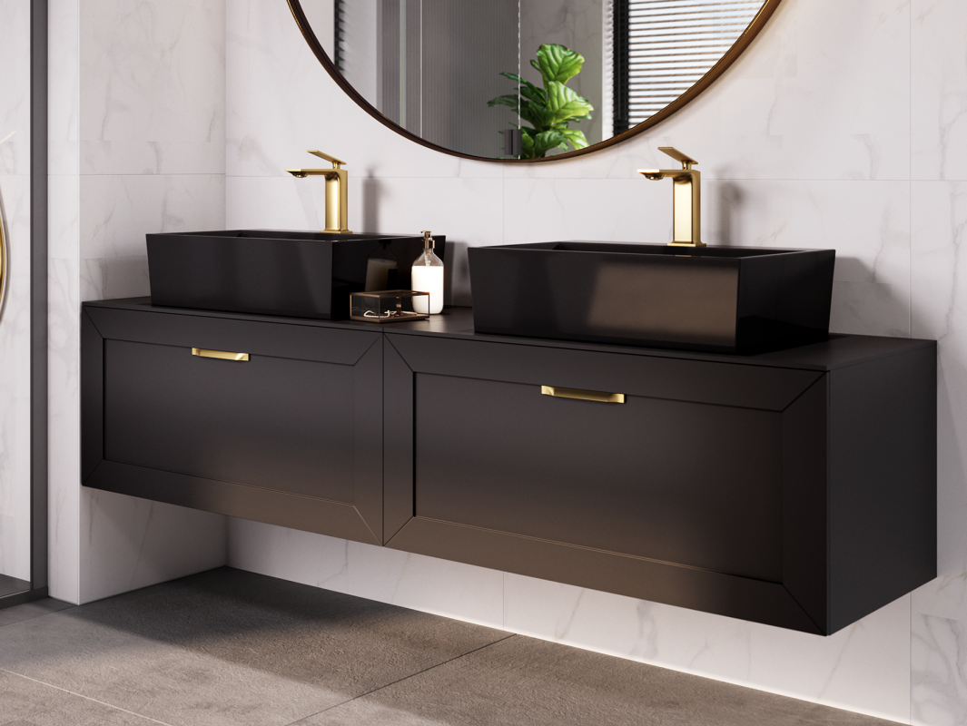 Luo täydellinen kylpyhuonekaappi yhdistämällä valitsemasi työtaso ja Dexan modulaarinen kaappi (lisämaksusta).