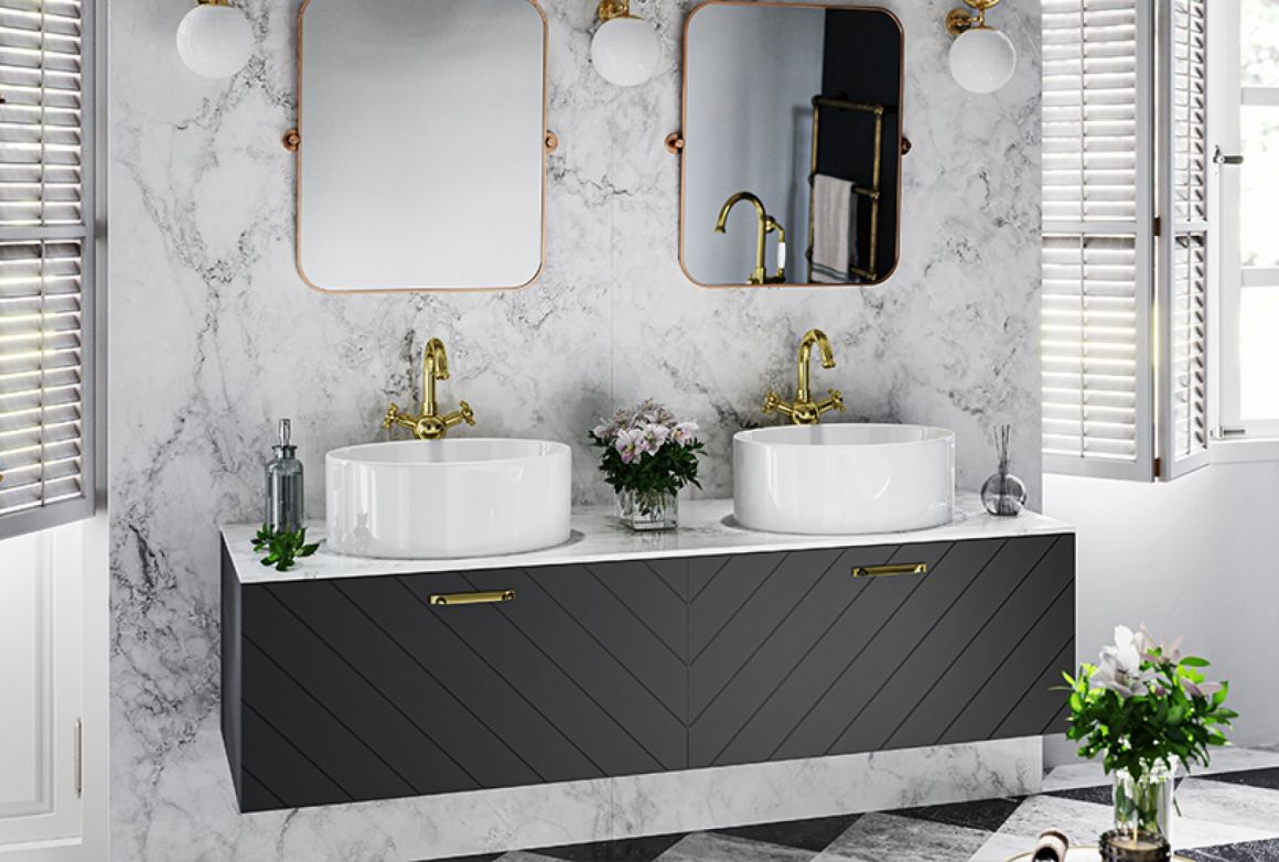 Luo täydellinen kylpyhuonekaappi yhdistämällä valitsemasi työtaso ja Dexan modulaarinen kaappi (lisämaksusta).