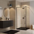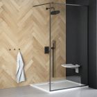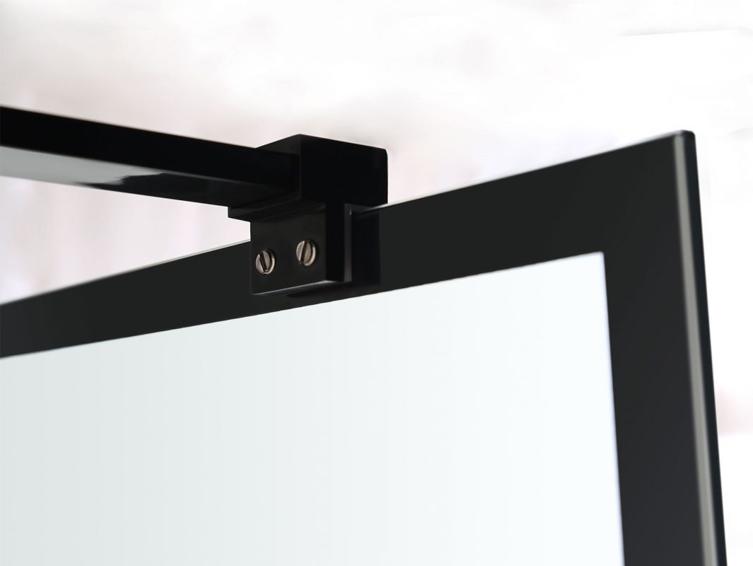 Karkaistu turvalasi 8 mm & alumiini, matta musta viimeistely metallin yksityiskohdista. Käännettävä malli: oikea / vasen kokoonpano. Kannattimen maksimipituus - 120 cm, se voidaan leikata mittojen mukaan. Musta alumiinikehys lasin ympärillä. Besco ProClean -pinnoite vakiona. Sopivat suihkualtaat: Axim UltraSlim, Nox UltraSlim, Alpina SlimLine, Acro UltraSlim, Aquarius SlimLine, Vexo, Vexo Black. Sopivat lineaariset suihkuviemärit: koko Virgo-sarja. Saatavilla on laaja valikoima yhteensopivia hana- ja suihkusarjasarjoja.