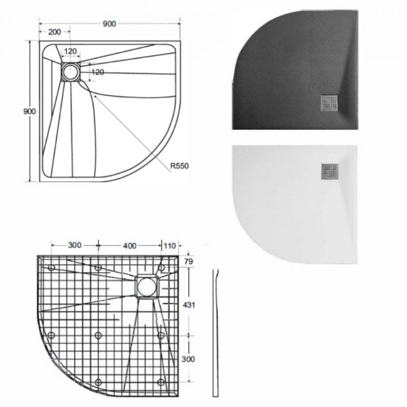 UltraSlim-suihkuallas, SMC, mattavalkoinen pinta, jossa on luonnonkiveä jäljittelevä herkkä rakenne. Suihkuastian hintaan sisältyy sarja yhteensopivaa viemärin suojusta ja sifonia, jossa on yläpuhdistustoiminto. Suihkualtaan muoto mahdollistaa joko lattialle tai lattiatasoon asennuksen, joka mahdollistaa kynnyksettömän sisäänkäynnin suihkutilaan. Suihkuallas voidaan leikata mittojen mukaan.