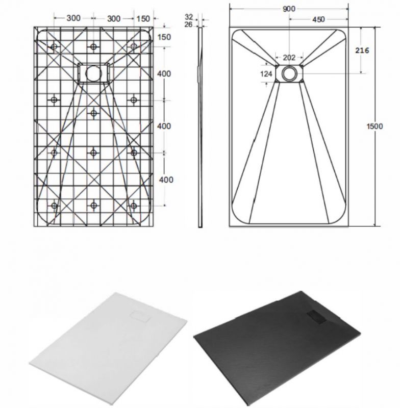 UltraSlim-suihkuallas, SMC, mattavalkoinen pinta, jossa on luonnonkiveä jäljittelevä herkkä rakenne. Suihkuastian hintaan sisältyy sarja yhteensopivaa viemärin suojusta ja sifonia, jossa on yläpuhdistustoiminto. Suihkualtaan muoto mahdollistaa joko lattialle tai lattiatasoon asennuksen, joka mahdollistaa kynnyksettömän sisäänkäynnin suihkutilaan. Suihkuallas voidaan leikata mittojen mukaan.
