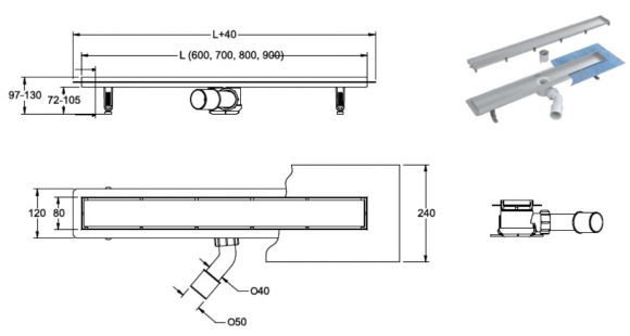 Lineaarinen suihkuviemärisarja on täydellinen ja asennusvalmis, ja se sisältää: viemäriputken, jossa on sifoni ja kiinnitysjalat, ritilä ja tiivistemansetti. 8 cm leveä ritilä. Asennuskorkeus - alkaa 72 mm reunasta. 2-in-1 duo -tyyppinen ritilä, harjattu kromipinta tai asennettavaksi keraamisten laattojen kanssa. 360˚ sifoni, jossa on yläpuhdistustoiminto ja jopa 56 l/min vesiteho. Ø 50 mm liitäntä (ilman pienennystä 40 mm:iin). Materiaali: ruostumaton teräs, ABS.