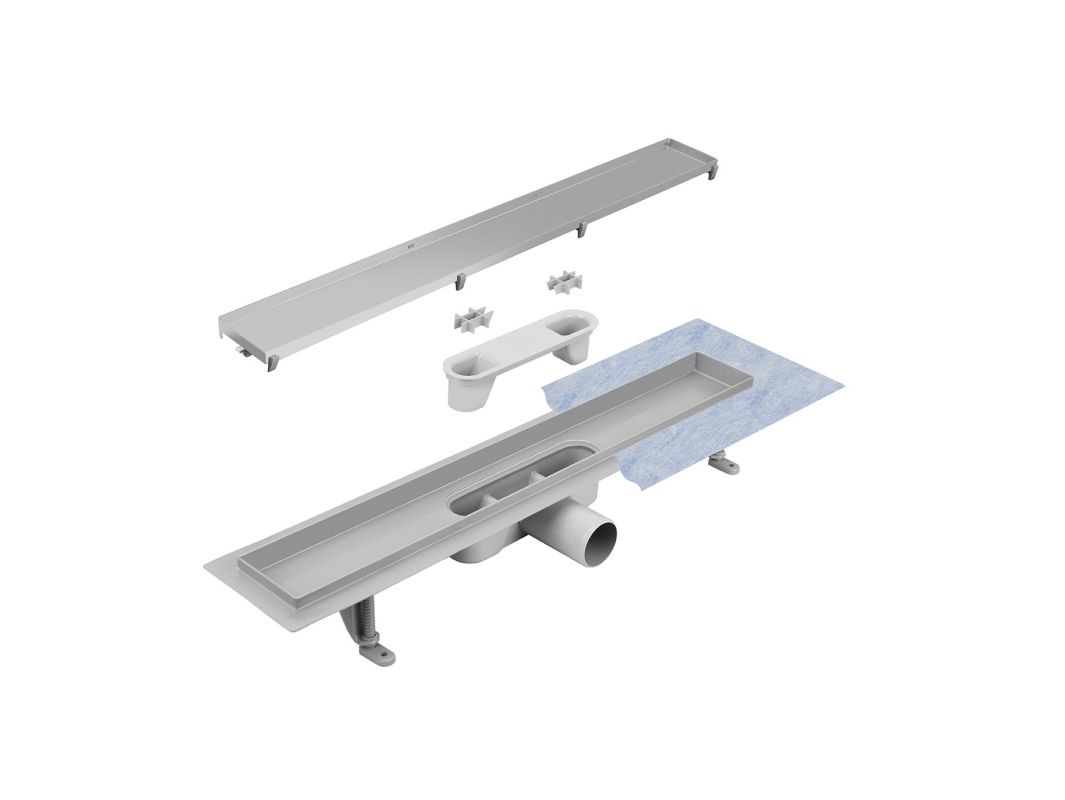 Lineaarinen suihkuviemärisarja on täydellinen ja asennusvalmis, ja se sisältää: viemäriputken, jossa on sifoni ja kiinnitysjalat, ritilä ja tiivistemansetti. Ohut ritilä, 6,5 cm leveä. Matala asennuskorkeus - alkaa 57 mm reunasta. 2-in-1 duo -tyyppinen ritilä, harjattu kromipinta tai asennettavaksi keraamisten laattojen kanssa. Ø 50 mm liitäntä (ilman pienennystä 40 mm:iin). Materiaali: ABS, ruostumaton teräs.