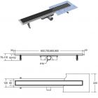 Lineaarinen suihkuviemärisarja on täydellinen ja asennusvalmis, ja se sisältää: viemäriputken, jossa on sifoni ja kiinnitysjalat, ritilä ja tiivistemansetti. Ohut lasista valmistettu ritilä, 6 cm leveä. Matala asennuskorkeus - alkaa 62 mm reunasta. Ø 50 mm:n liitäntä (ilman pienennystä 40 mm:iin). Materiaali: ruostumaton teräs, lasi, ABS.