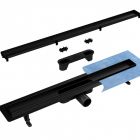 Lineaarinen suihkuviemärisarja on täydellinen ja asennusvalmis, se sisältää: viemäriputken, jossa on sifoni ja asennusjalat, ritilä ja tiivistemansetti - kaikki osat mustia. Ohut ritilä, 6 cm leveä. Matala asennuskorkeus - alkaa 62 mm reunasta. 2-in-1 duo -tyyppinen ritilä, mattamusta viimeistely tai asennettavaksi keraamisten laattojen kanssa. Sifoni mustana, jossa on yläpuhdistustoiminto ja jopa 56 l/min vesiteho. Liitäntä Ø 50 mm (ilman pienennystä 40 mm:iin). Materiaali: ruostumaton teräs, ABS.