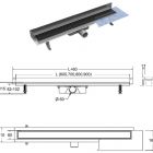 Lineaarinen suihkuviemärisarja on täydellinen ja asennusvalmis, ja se sisältää: viemäriputken, jossa on sifoni ja kiinnitysjalat, ritilä ja tiivistemansetti. Ohut lasista valmistettu ritilä, 6 cm leveä. Matala asennuskorkeus - alkaa 62 mm reunasta. Sifoni yläpuhdistustoiminnolla ja jopa 56 l/min vesitilavuudella. Ø 50 mm liitäntä (ilman pienennystä 40 mm:iin). Viemäri on suunniteltu seinän viereen asennettavaksi. Materiaali: ruostumaton teräs, lasi, ABS.