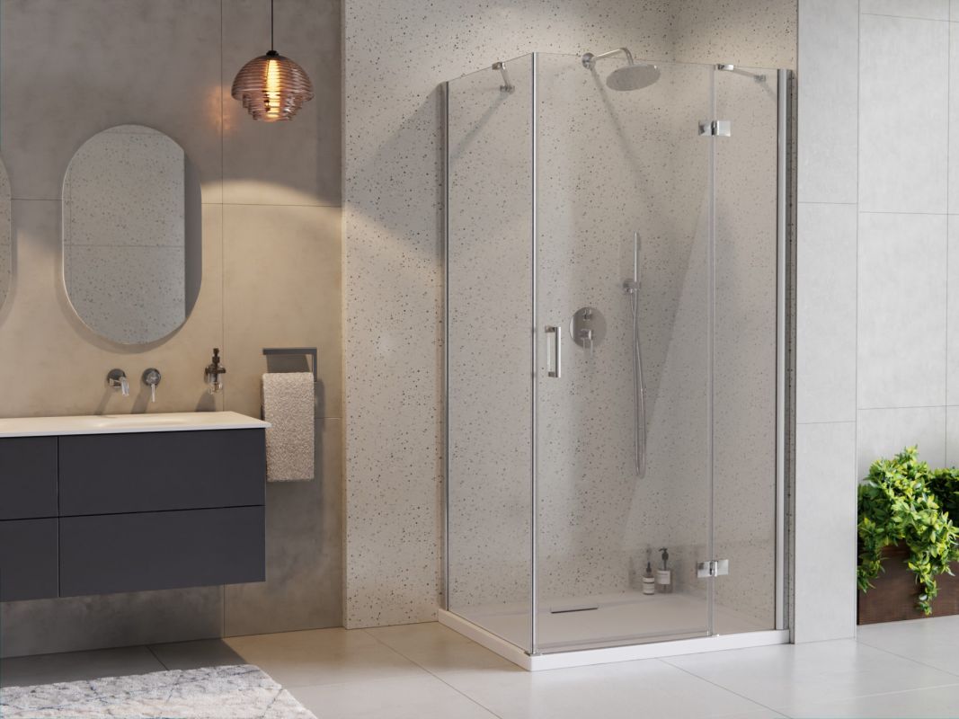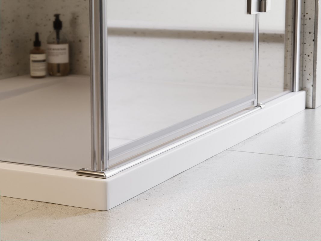 Suihkukaappi suorakulmainen. Ohjaamon oikea tai vasen puoli. 8 mm:n karkaistu kirkas turvalasi, profiiliton saranaovi, metalliosien kiiltävä kromiviimeistely. Magneettitiiviste ovessa. Alhaalla oven nostosaranat. Lamelli, joka valuttaa veden takaisin koteloon. Sopivat suihkualtaat: Axim UltraSlim, Nox UltraSlim, Alpina SlimLine, Vexo, Vexo Black. Saatavilla on laaja valikoima yhteensopivia hana- ja suihkusarjasarjoja.