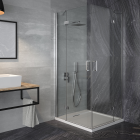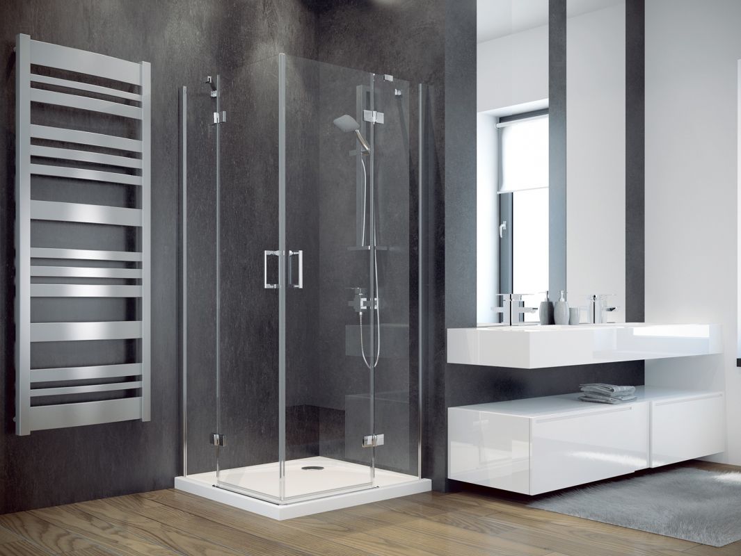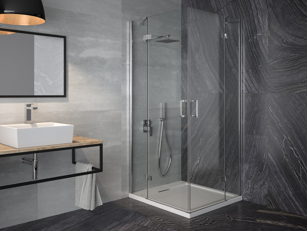 Neliön muotoinen suihkukaappi. Oikea/vasen kokoonpano. Karkaistu kirkas turvalasi 8 mm, profiiliton saranaovi, metalliosien kiiltävä kromipinta. Magneettitiiviste ovessa. Alhaalla oven nostosaranat. Lamelli, joka johtaa veden takaisin koteloon. Sopivat suihkualtaat: Axim UltraSlim, Acro UltraSlim, Aquarius SlimLine, Vexo, Vexo Black. Saatavilla on laaja valikoima yhteensopivia hana- ja suihkusarjasarjoja.