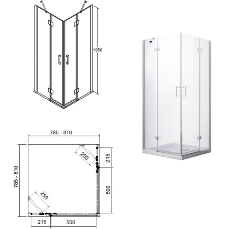 Neliön muotoinen suihkukaappi. Oikea/vasen kokoonpano. Karkaistu kirkas turvalasi 8 mm, profiiliton saranaovi, metalliosien kiiltävä kromipinta. Magneettitiiviste ovessa. Alhaalla oven nostosaranat. Lamelli, joka johtaa veden takaisin koteloon. Sopivat suihkualtaat: Axim UltraSlim, Acro UltraSlim, Aquarius SlimLine, Vexo, Vexo Black. Saatavilla on laaja valikoima yhteensopivia hana- ja suihkusarjasarjoja.