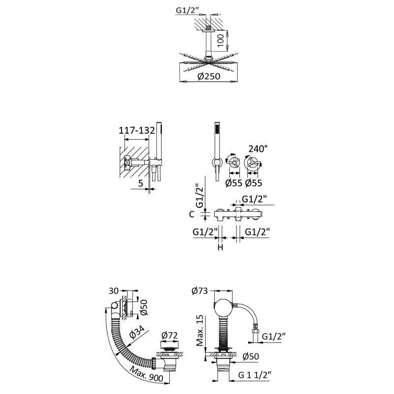 Bruma Genesi Progressiivinen amme- ja suihkusetti Ø250 mm yläsuihkulla, käsisuihkulla ja ammeentäytöllä, Yötaivas Tuotekoodi: 191 362 1NS