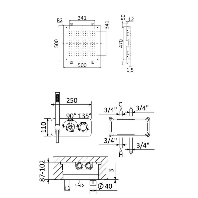 Bruma Genesi Termostaattinen suihkusetti, jossa on yläkäsisuihku (Sade) ja käsisuihku, kromi Tuotekoodi: 191 787 1CR