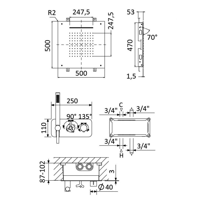 Bruma Genesi Termostaattinen suihkusetti, jossa on yläkäsisuihku (Sade/Kaskadi) ja käsisuihku, Puhdas valkoinen Tuotekoodi: 191 788 1PW