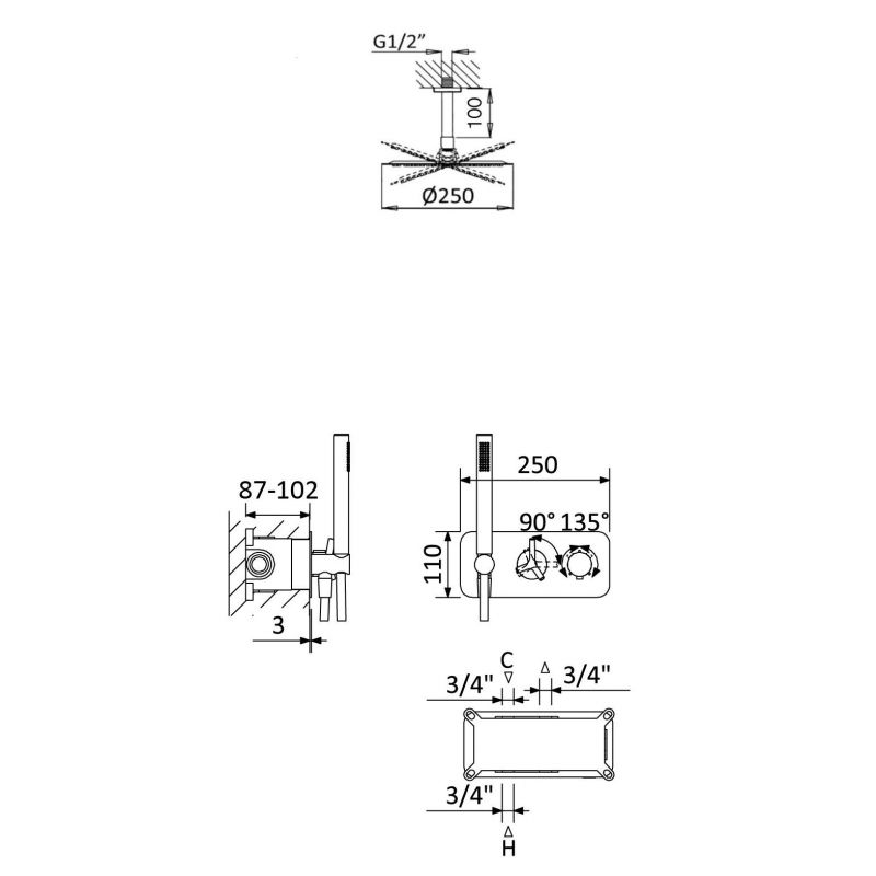 Bruma Genesi Termostaattinen suihkusetti, jossa on suihkupää Ø250 mm ja käsisuihku, Puhdas valkoinen Tuotekoodi: 191 792 1PW