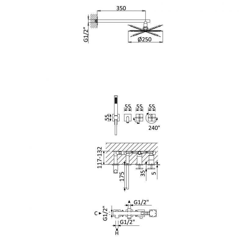 Bruma Hera Progressiivinen setti Ø250 mm suihkupäällä, Elo-käsisuihkulla ja EloQ-ammenokalla, Puhas valkoinen Tuotekoodi: 106 312 1PW