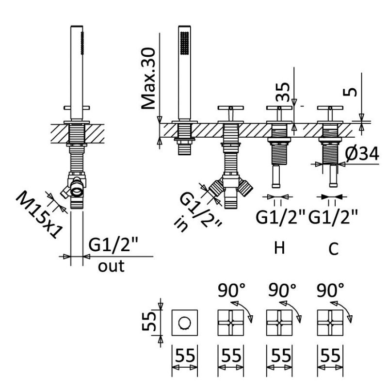 - Keraamiset käyttöventtiilit 1/2" - 90°