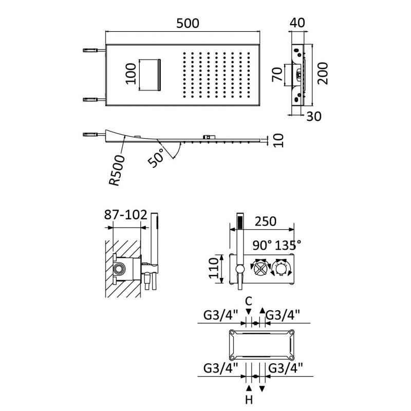 Bruma Hera Termostaattisetti Line Cascade -suihkulla (Sade/Vesiputous) ja käsisuihkulla, Puhas valkoinen Tuotekoodi: 106 496 0PW