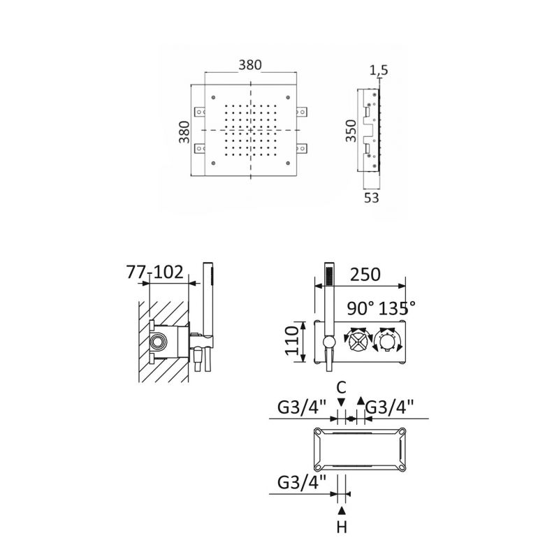 Bruma Hera Termostaattisetti yläsuihkulla (Sade) ja käsisuihkulla, Aamusumu Tuotekoodi: 106 497 0MM