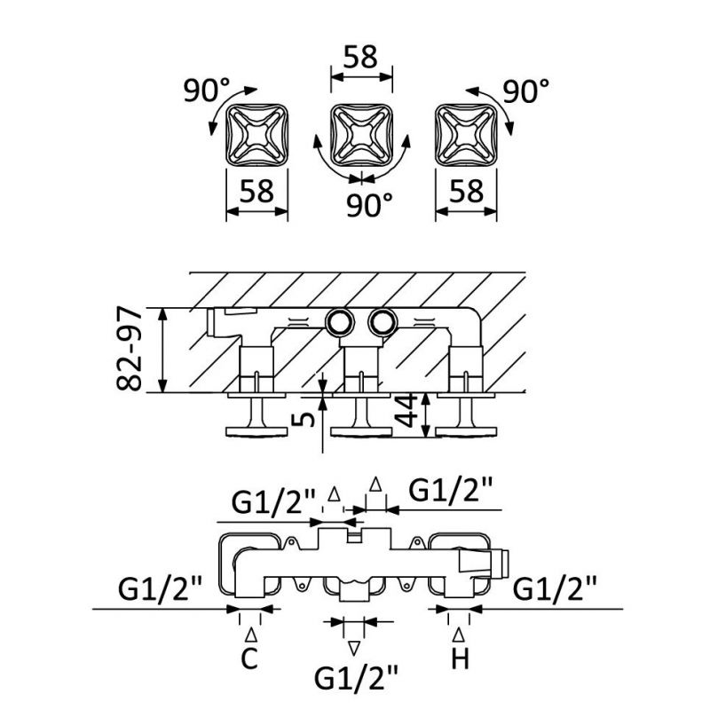 - Keraaminen käyttö-osa, 1/2" - 90°