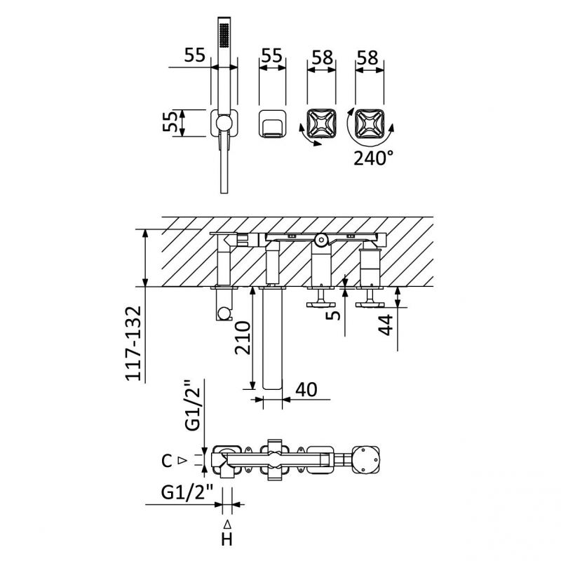 Bruma Navy Progressiivinen sekoittaja ZenS-ammejuoksuputkella ja Elo-käsisuihkusarjalla, Yötaivas Tuotekoodi: 190 102 1NS