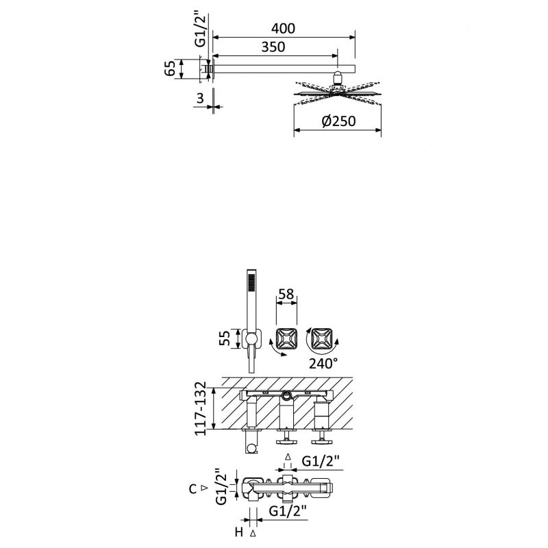 Bruma Navy Progressiivinen suihkusetti, jossa on suihkupää Ø250 mm ja käsisuihku, Gunmetal Tuotekoodi: 190 742 1MG
