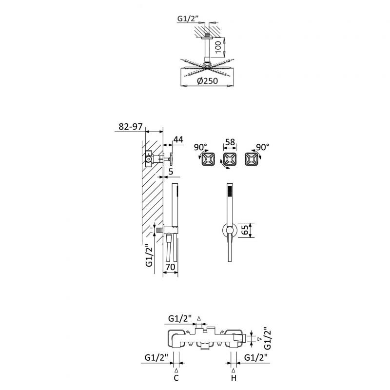 Bruma Navy Suihkukompletti, jossa on suihkupää Ø250 mm ja erillinen käsisuihku, kromi Tuotekoodi: 190 310 3CR