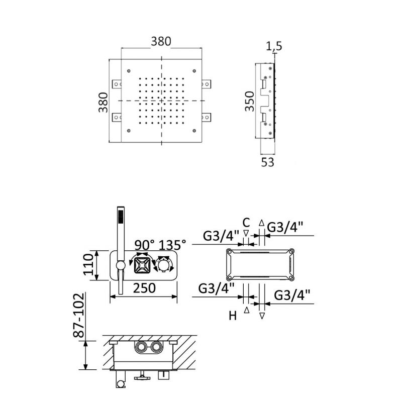 Bruma Navy Termostaattinen suihkusetti, jossa on pääsuihku (Sade) ja käsisuihku, Aamukaste Tuotekoodi: 190 786 1MM