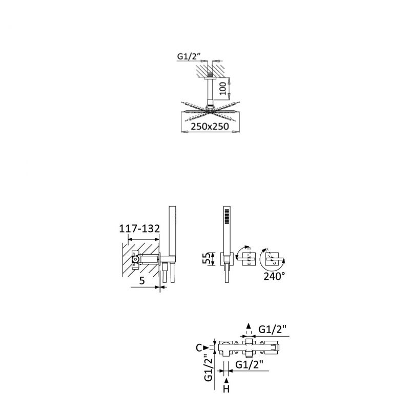 Bruma Royale Progressiivinen piilotettu suihkusetti, jossa on suihkupää ja käsisuihku Auringonnousu Tuotekoodi: 1927521SR