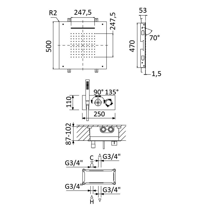 Bruma Royale Termostaattinen suihkusetti, jossa on pääsuihku (sade/kaskadi) ja käsisuihkusetti kromi Tuotekoodi: 192 788 1CR